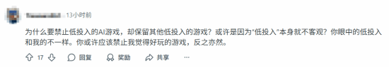 同时也有人对该玩家的观点提出了纠正,认为若要进行禁止,就应当对所有低质量游戏一视同仁地禁止,并且指出不同玩家的评判标准存在差异。