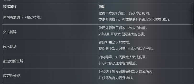 从预告片呈现的实机画面来看,哈里斯的机械臂既能施展迅猛的近战攻击,又可释放范围性的毒属性技能,让敌人承受持续伤害。她的技能设计兼具工程学的策略性与融合科技的爆发力,为玩家带来了全新的战斗体验。