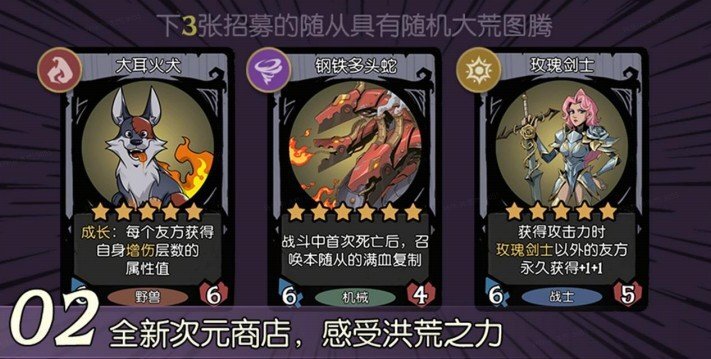 「异次元商店·大荒遗珍」同步开启,玩家在招募随从时,特定回合将触发异次元商店,在此处购买的随从会携带大荒图腾,拥有图腾的随从可获得特殊buff,让每一局对战的阵容搭配都充满变数与惊喜。