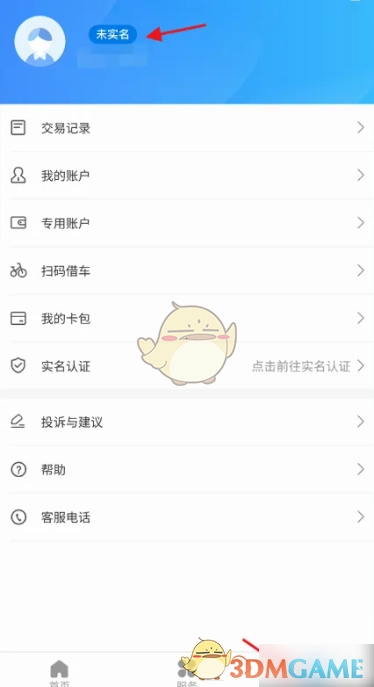 2、成功登录绍兴市民云APP后,点击“我的”,再点击左上方显示的“未实名”选项进入,随后进行账号的实名认证。
