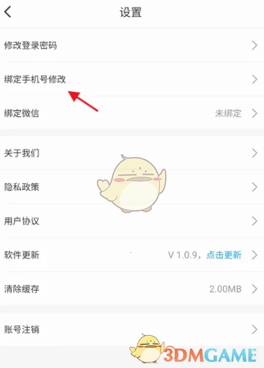 4、打开设置,在页面下方找到并进入绑定手机号修改入口。