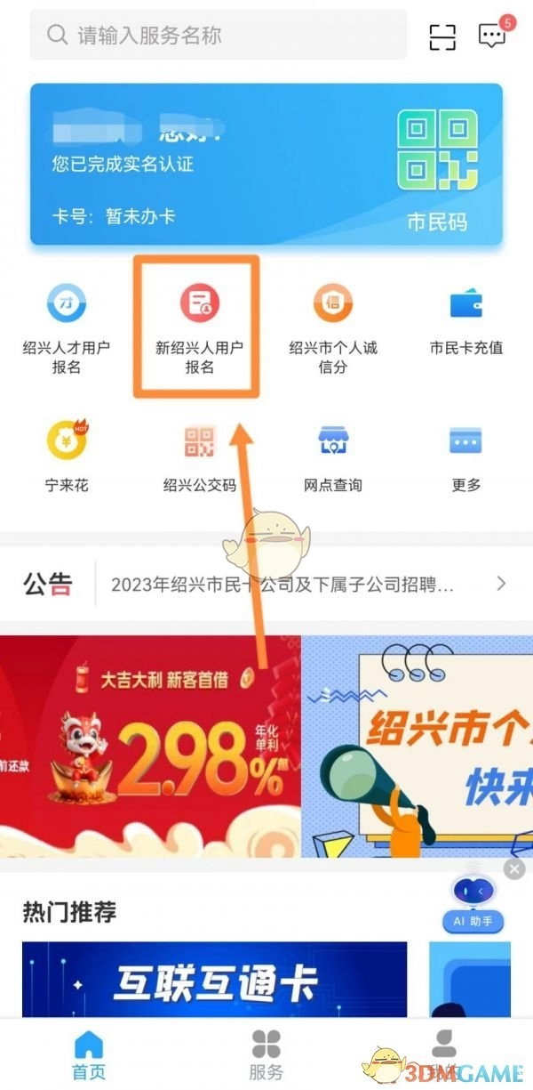 1. 下载绍兴市民云APP,完成实名注册并登录,在首页点击【新绍兴人用户报名】