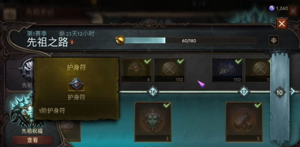 途径二:当先祖之路达到16级与36级时,各可免费获取4个护身符。