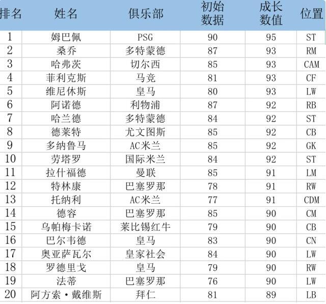 需要注意的是,这份表单里的潜力球员仅对应FIFA21当前版本的潜力值,像格林伍德、福登这类具备潜在上升空间的球员并未纳入其中——他们的能力提升需等到游戏后期EA发布更新,或是在特定生涯模式触发的条件下才会出现显著增长。