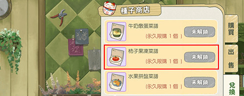 玩家接着就能在这个地方找到第二个菜谱,也就是柿子果冻的菜谱。另外,还能获取到牛奶炖蛋以及水果拼盘这两个菜谱。