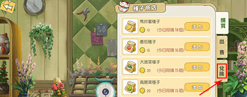 此时能看到不少商店可供购买,但在这里你没办法直接找到目标,需要玩家点击屏幕右侧,就能看到这个兑换按钮了。