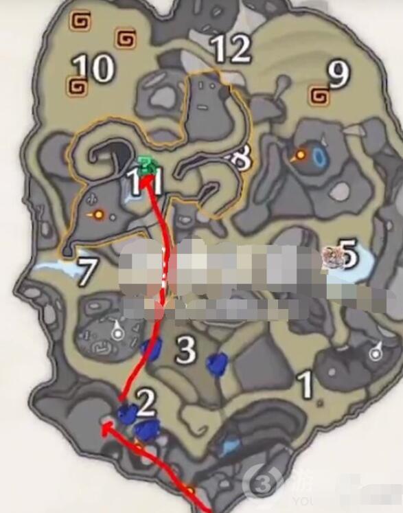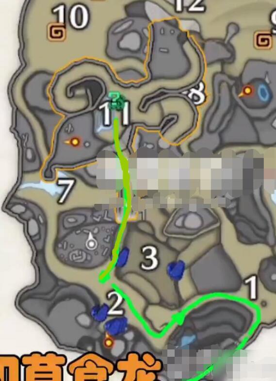 1、和上图所示一致,通过x定位硬甲龙的巢穴,随后前往该地点;