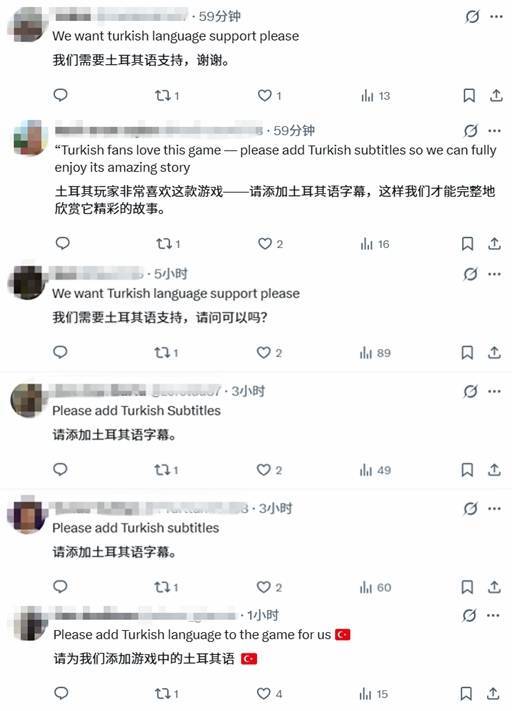 国外X平台的官方账号也同步发布了这一消息,随即引发网友们的热烈讨论。在众多讨论声中,不少土耳其语玩家纷纷发声“呼吁”:希望能加入土耳其语支持!