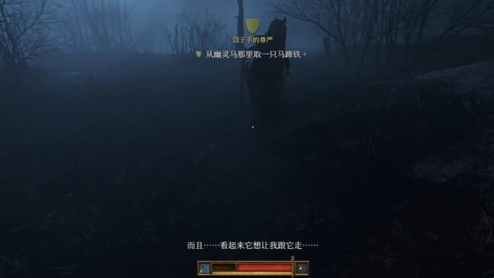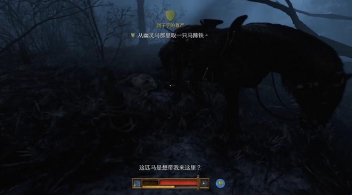 6、跟随幽灵马前行,一直到它停下来,接着靠近这匹马,要记得不要把马蹄铁取下来。