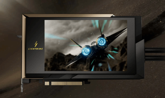 显卡顶部设有一块8英寸的LCD面板,名为Lightning Panel,其面积比多数智能手机屏幕还要大,可借助显卡I/O接口处的USB-C接口实现连接。