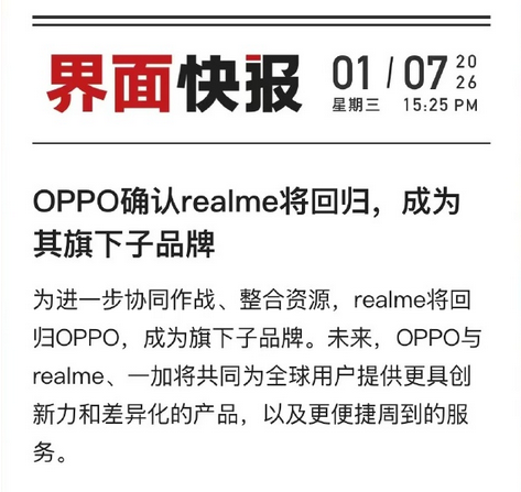 有媒体报道,此前从OPPO体系中分拆出去独立创业的品牌realme,即将回归OPPO。realme的CEO李炳忠将负责领导整体子品牌业务,一加中国区总裁李杰的职责保持不变,realme则会全面接入OPPO的售后服务体系。在未来,OPPO将携手realme与一加,一同为全球用户提供更具创新力和差异化的产品,以及更为便捷周到的服务。