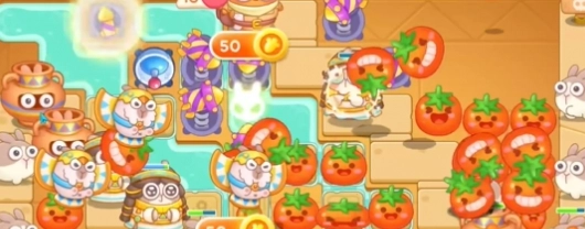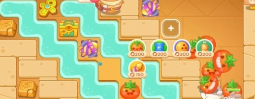 2. 清除右侧道具后,接着在右侧增添番茄炮台并对其进行升级。