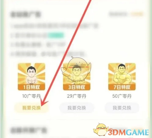 4、回到活动页面,用广零丹兑换特权,即可关闭开屏广告。