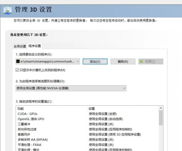 然后把“管理3D设置”里的自定义程序换成《只狼》就可以啦!