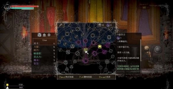 游戏的加点系统是这样的:每次升级会获得暗之珠,玩家可以用这些暗之珠在技能树中提升各项属性。新手入门时,建议先点出瓶药技能,再额外加一级盾牌技能,这样能让前期的战斗轻松不少。度过初期后,后续就沿着剑精通的分支依次加点即可。