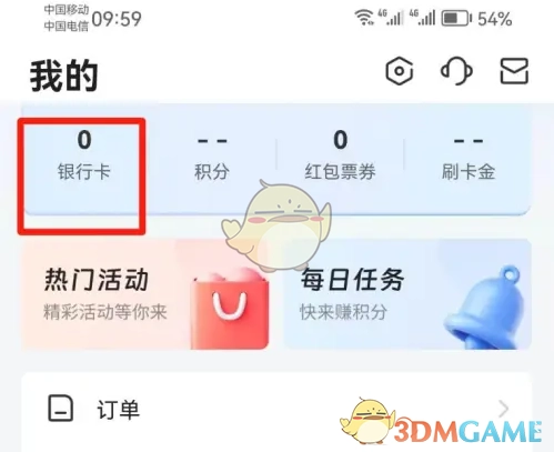 2、于我的页面点击【银行卡】选项。