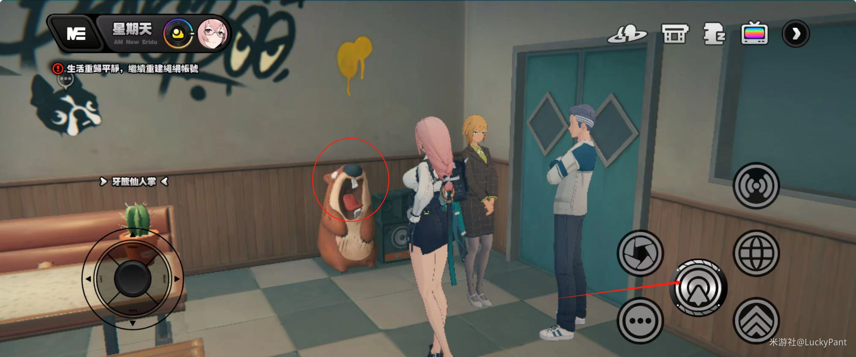 2. 走进芝托邦餐厅,在角落里寻找到土拨鼠,点击交互键与之对话。