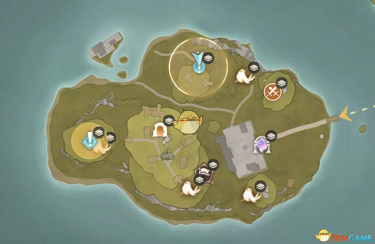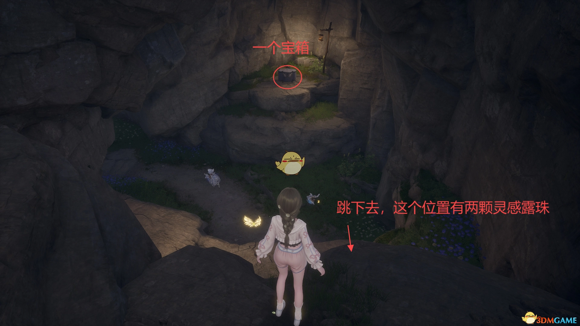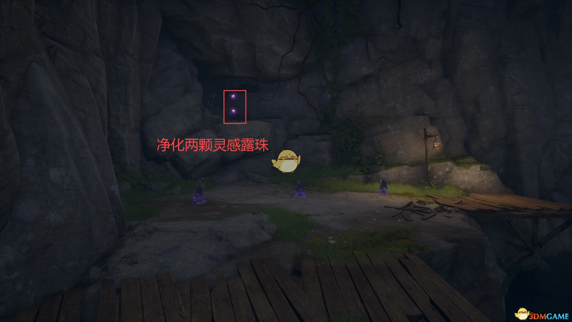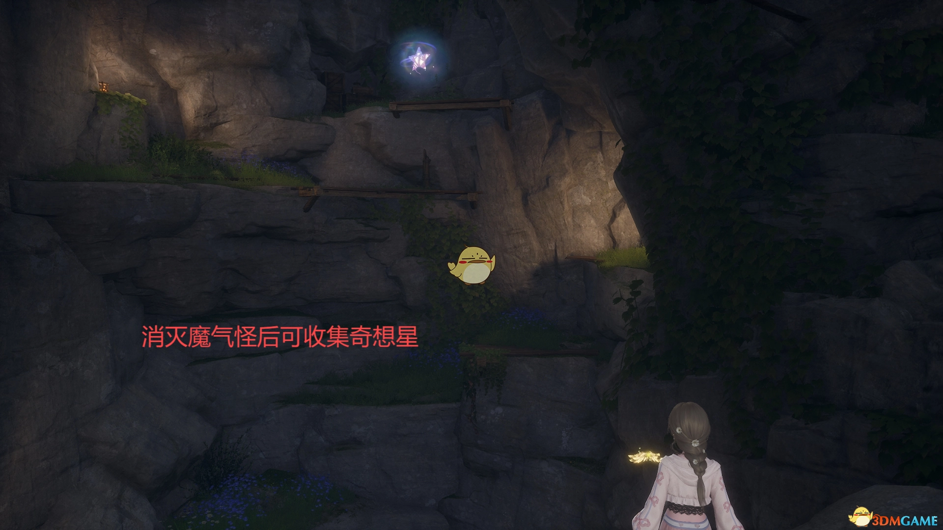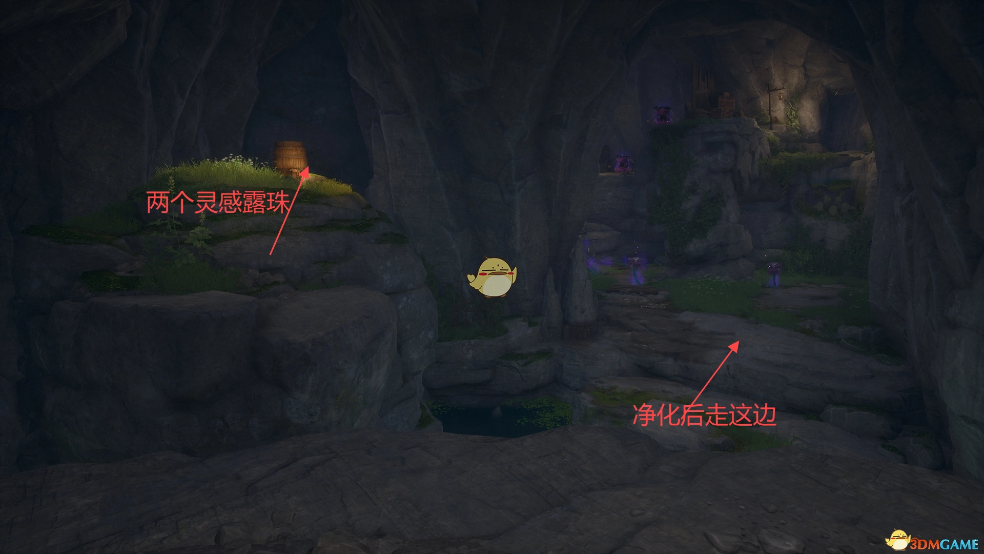 二、采集步骤:洞窟之中有1颗奇想星以及8颗灵感露珠。