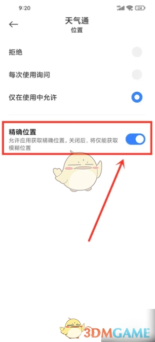 4、进入位置权限页面,把【精确位置】开启就可以了。