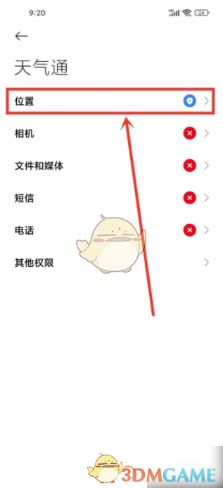 3、来到系统权限页面,点击【位置】选项。
