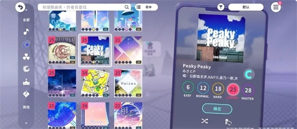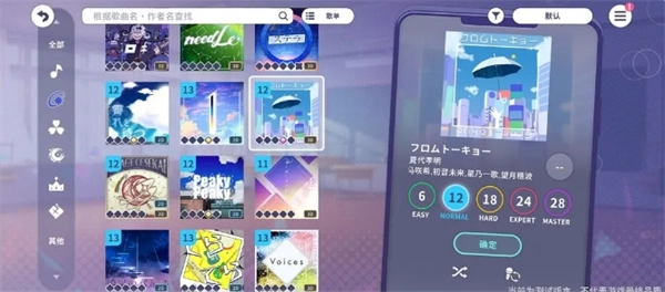 挑选一首自己钟爱的歌曲,且所选歌曲的难度需在NORMAL难度之上(强烈推荐选择hard难度)