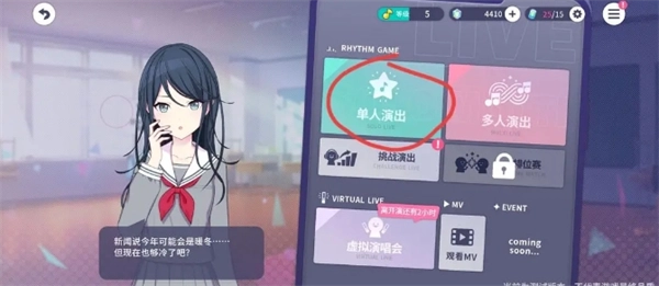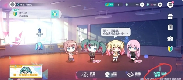 5. 进行1次NORMAL难度或更高难度的演出(新人任务轮次3中有挑战hard难度的任务,因此建议选择hard难度)