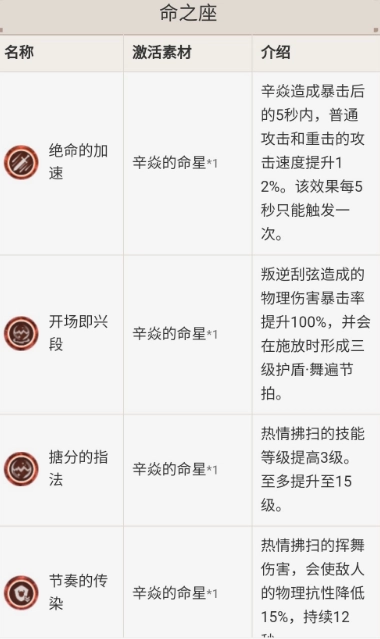 辛焱的普攻倍率比重云高,但其附火能力极为有限。当受到重云的附魔效果后,辛焱完全能够转变为冰元素伤害输出。辛焱一命效果为暴击后提升攻击速度,这使得一命辛焱在冰伤流派中适用性极佳。而重云作为副C,具备爆发输出能力,其对能量需求较低且技能冷却时间短,这些特性对于整个阵容实力有着显著的提升。