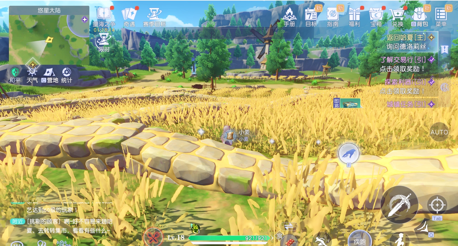 瞧,这儿有着一片金灿灿的麦田,产出的食物量多,足够让人吃得饱饱的。听闻上次的采集竞赛,此地那可是人山人海,热闹非凡!