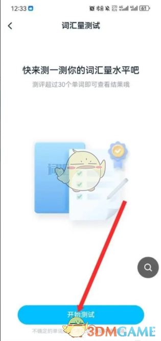 若你是想测试英语词汇量的用户,只需打开金山词霸APP,进入词汇量测试页面,随后依照提示开启测试。系统会分阶段对你的词汇水平进行检测,最后给出你的总词汇量。这一过程迅速又方便,能让你轻松知晓自身词汇水平。
