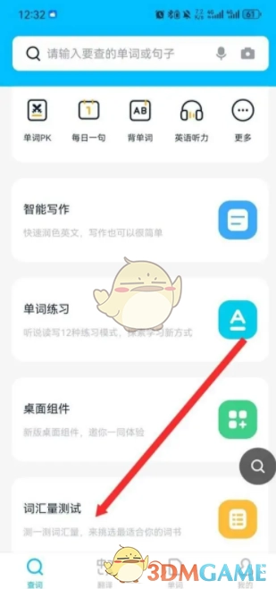 1. 打开金山词霸APP,在其页面中点击底部的词汇量测试选项。