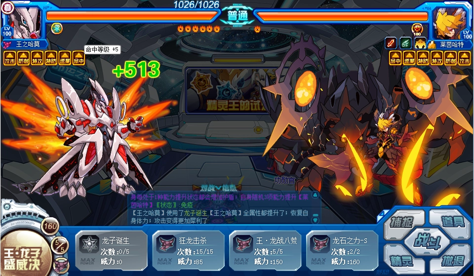 “龙子诞生”这一技能,不但能在对战时提升王之哈莫的属性,还具备体力恢复的功效。因此各位玩家可安心使用此技能,当属性强化到五级之后,搭配第五技能“王·龙子盛威决”,就能打败精灵王们。