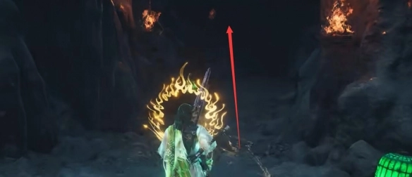 2、要记得站在绿色灯笼附近,不然会掉血。在图示位置与【黑袍使】对话后,再向前走。