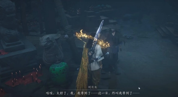 6、身着【阴兵甲】,打开门后进入【长眠冢】,与【刘长生】交谈,随后击败出现的【朱佑生】。