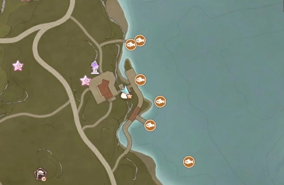2、粉色缎带鱼的钓鱼点位置,如下图所示: