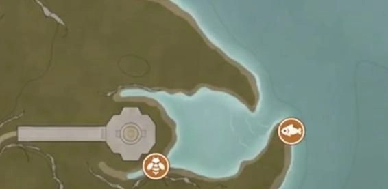 3、前往下图所示位置,让青蛙去到湖中间,那里有两个钓鱼点可供垂钓。