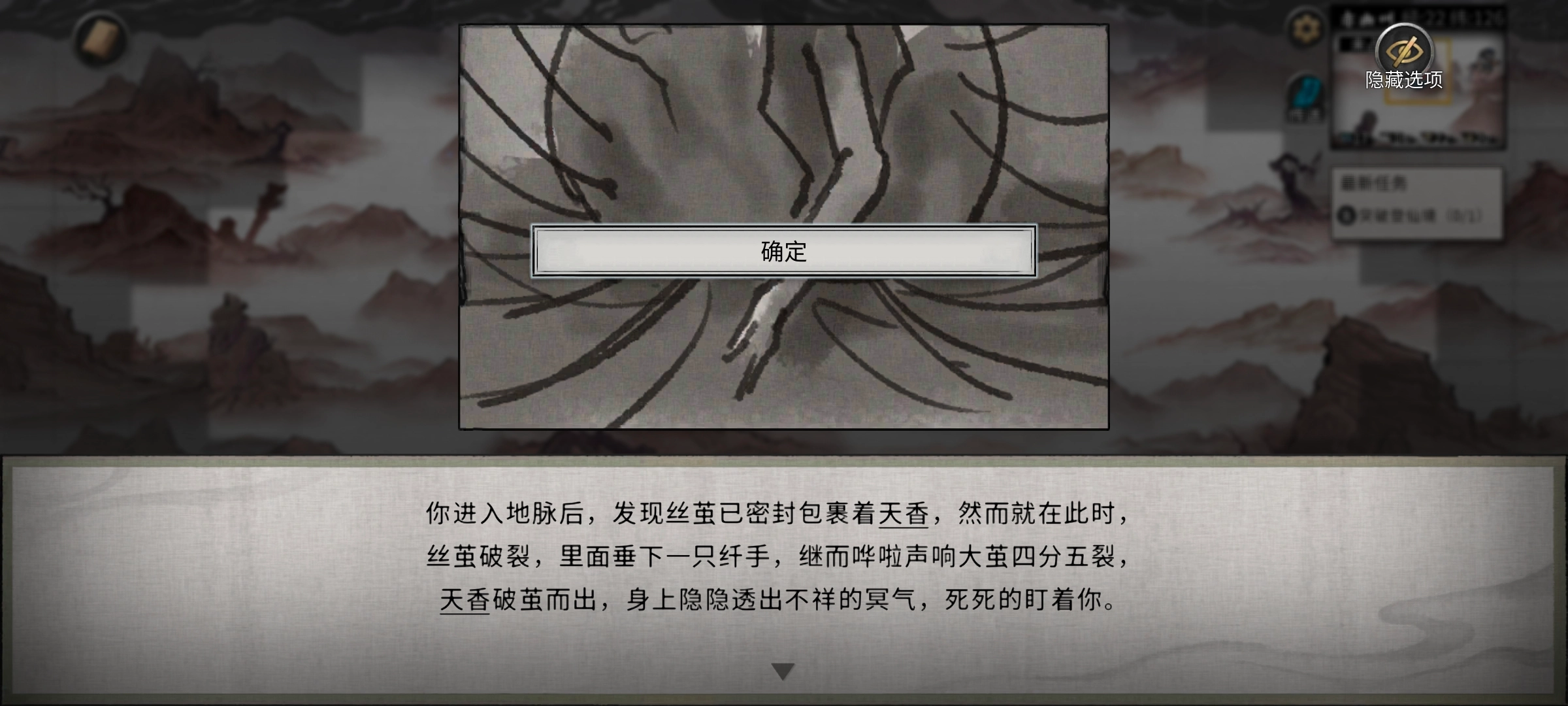 2、剧情任务进行到帝花吸入冥气进而结茧这一剧情时,务必保存进度。此处是关键要点,紧接着会迎来一场极具难度的boss战,一旦战败,就会触发死亡结局,帝花也不会加入队伍。在此特别提醒,一定要提前保存。
