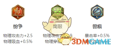 红色选择纷争,它能让韩信凭借物理攻击获得充足输出,有效提升清野效率以及与敌方的对抗能力;绿色搭配鹰眼,能进一步增强韩信物理穿透带来的穿甲输出能力;蓝色选用兽痕,其暴击率加成在一定程度上可使韩信输出达到最大化。