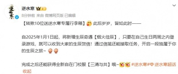 1、2025年1月1日时装将会上线,更新之后会新增生辰奇遇【烟火佳辰】。