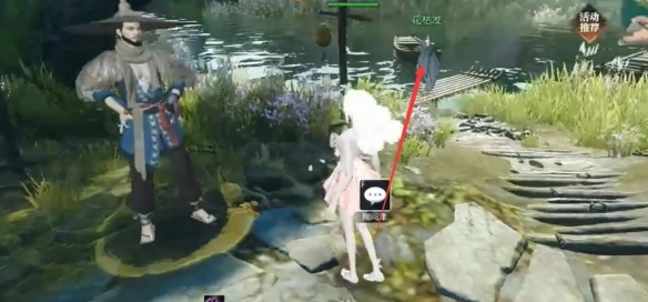 2. 径直朝着NPC所在方向行进,随后跳到竹排上。