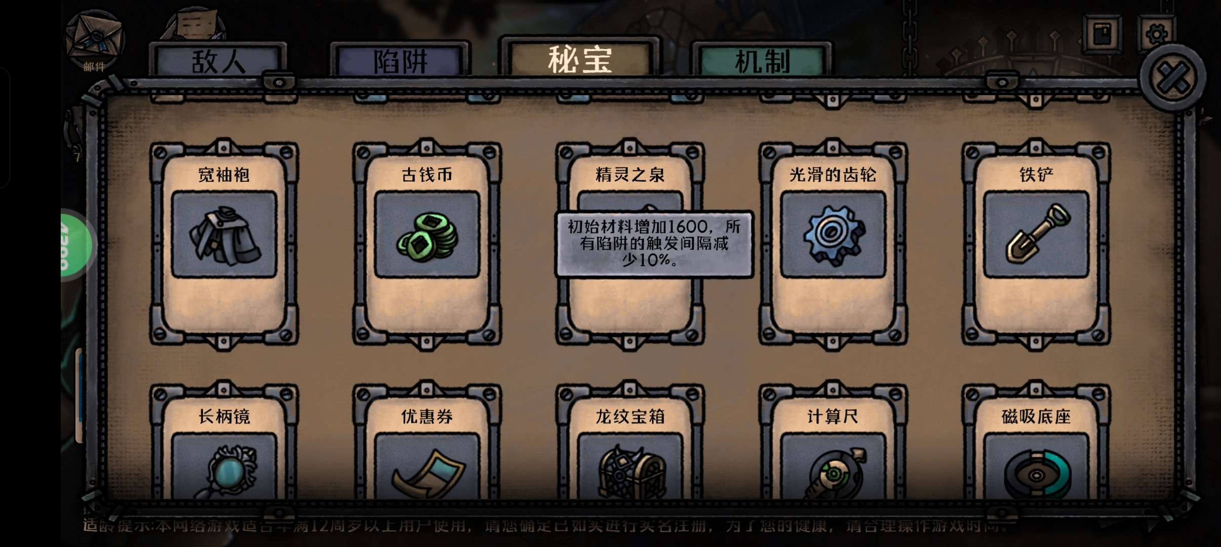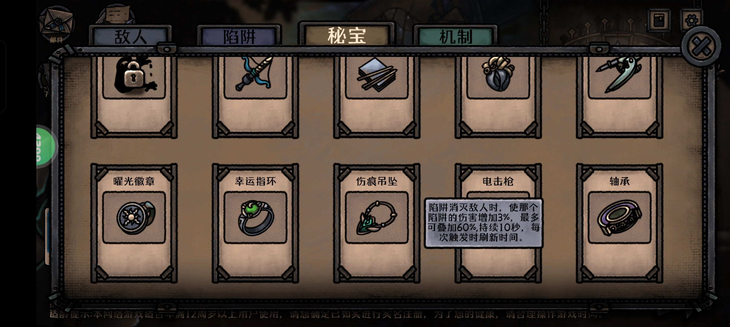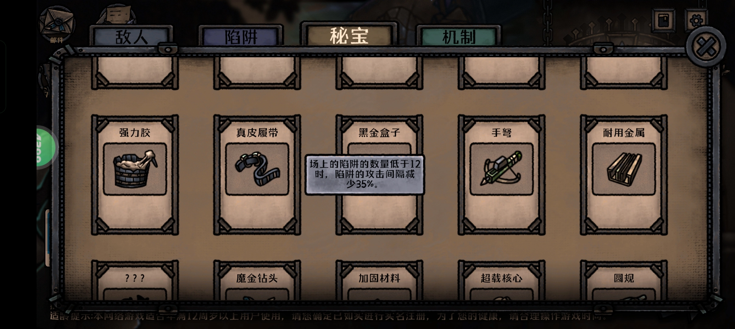 前期依靠2☆奥术地板升分支乙来守家(或者用狂风陷阱)。秘宝方面,理论上只需这五个,按优先级排序为真皮履带、光滑齿轮、羽毛披风、丰饶石像(后期最强)、伤痕吊坠 。每局放置2个冰锥陷阱、1个水元素、1 - 2个增幅之塔、1个霜冻地板、1个狂风陷阱,根据实际情况摆几个路障陷阱来封路。要是有机会拿到战栗陷阱,留一张也很好用。保持总数不超过11个(以便触发真皮履带),这样就能轻松过图。即便没拿到羽毛披风,应对空军也不会太吃力。而且这一套造价不高,材料需求不算大,所以无需收割者或电容器。