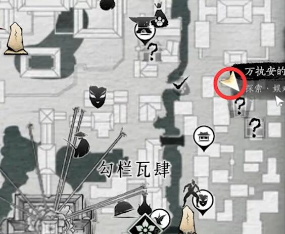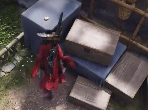 1、首先抵达图示的位置,接着在箱子上获取道具【萘蘼花签】。
