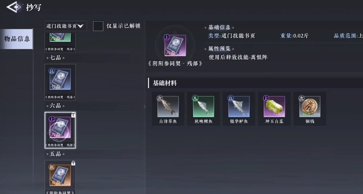 在游戏里,鱼类存在品级之分,具体涵盖白色、绿色、蓝色、紫色以及金色。在游戏市场中,金色鱼类的价格相对更高。然而,并不提倡玩家径直把金色品质的鱼类卖掉。毕竟在游戏中,制作某些技能书的材料会用到鱼类,像阴阳书的制作便是如此。