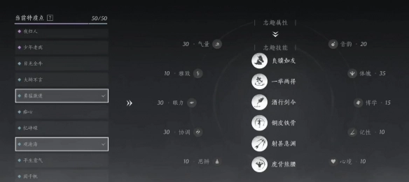 4、特质的挑选会对志趣技能产生影响,游戏开局时最多能够获取6个志趣。