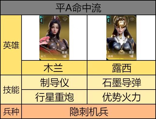 该阵容主要依靠制导仪的间歇性效果,为队伍提供限时命中从而触发技能效果。其余成员则通过增强普攻属性,实现普攻伤害最大化,以此快速压制敌方血线,其定位是输出队伍。