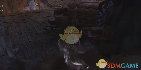 2、进入洞窟后,抵达一个放有沙包的平台位置。