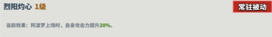 特性:上场瞬间即可获取20%的攻击力加成,这使得他在投入战斗后能快速提高输出能力。不管是作为开场首发角色,还是在战斗后期作为增援出场,阿波罗都能迅速融入战斗节奏,打出极高的伤害,进而强化了他在单体作战与群体作战方面的实力。