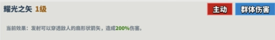 描述:发射可以穿透敌人的扇形形状箭矢,造成200%伤害。