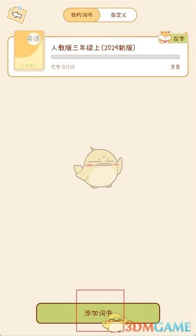2、当进入我的词书界面后,点击位于最下方的【添加词书】按钮。