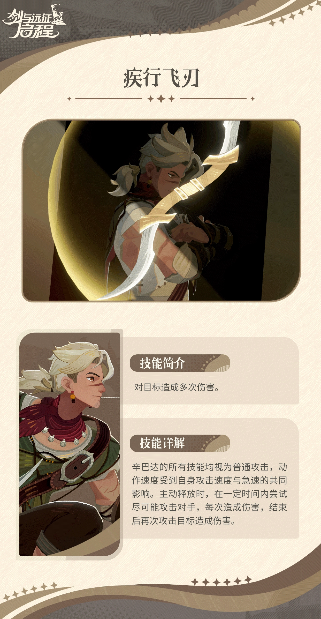 辛巴达在船长父亲讲述的航海冒险故事陪伴下成长,心中一直憧憬着自己能有一天开启海上征程。然而,父亲带领村里众人出海寻宝那次,却再也没有回来。此后,村子里的其他女人们将他抚养长大,辛巴达也把她们当作自己的母亲。接下来,小编就为大家详细介绍《剑与远征:启程》中辛巴达的技能!