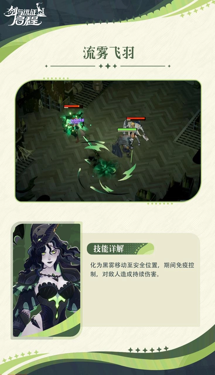 流雾飞羽,此乃波妮的保命神技。当遭受敌人攻击之际,波妮能够瞬间化作黑雾,闪现至自身4格范围之内的任意位置,同时进入无敌状态。在PVP对战当中,该技能堪称一绝,于关键时刻能够助力波妮躲开敌人的致命招数,从而为其赢得绝地反击的宝贵契机。